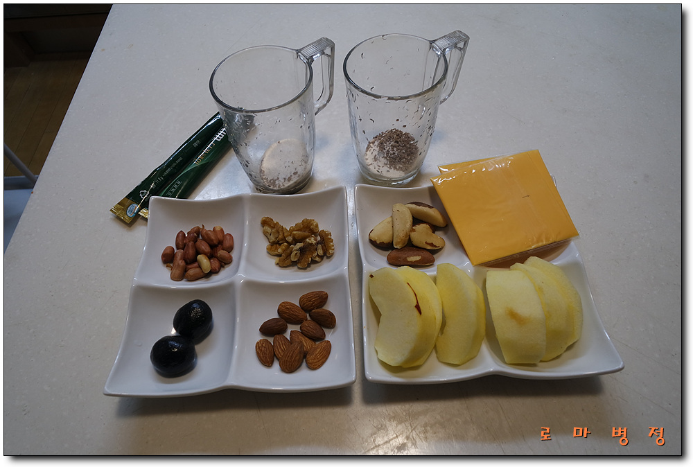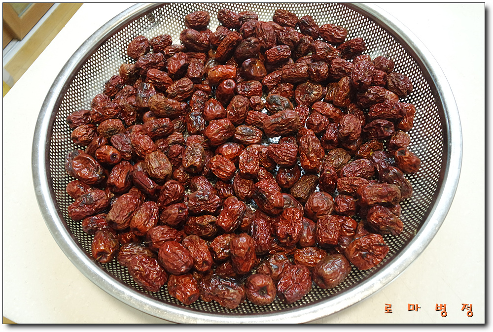 대추를 씻어 말려 마른팬에 볶아 도라지차를 대령한다.